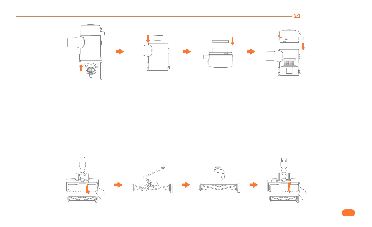 The brush roller is washable. Before replacing, check that the brush roller is completely dry.