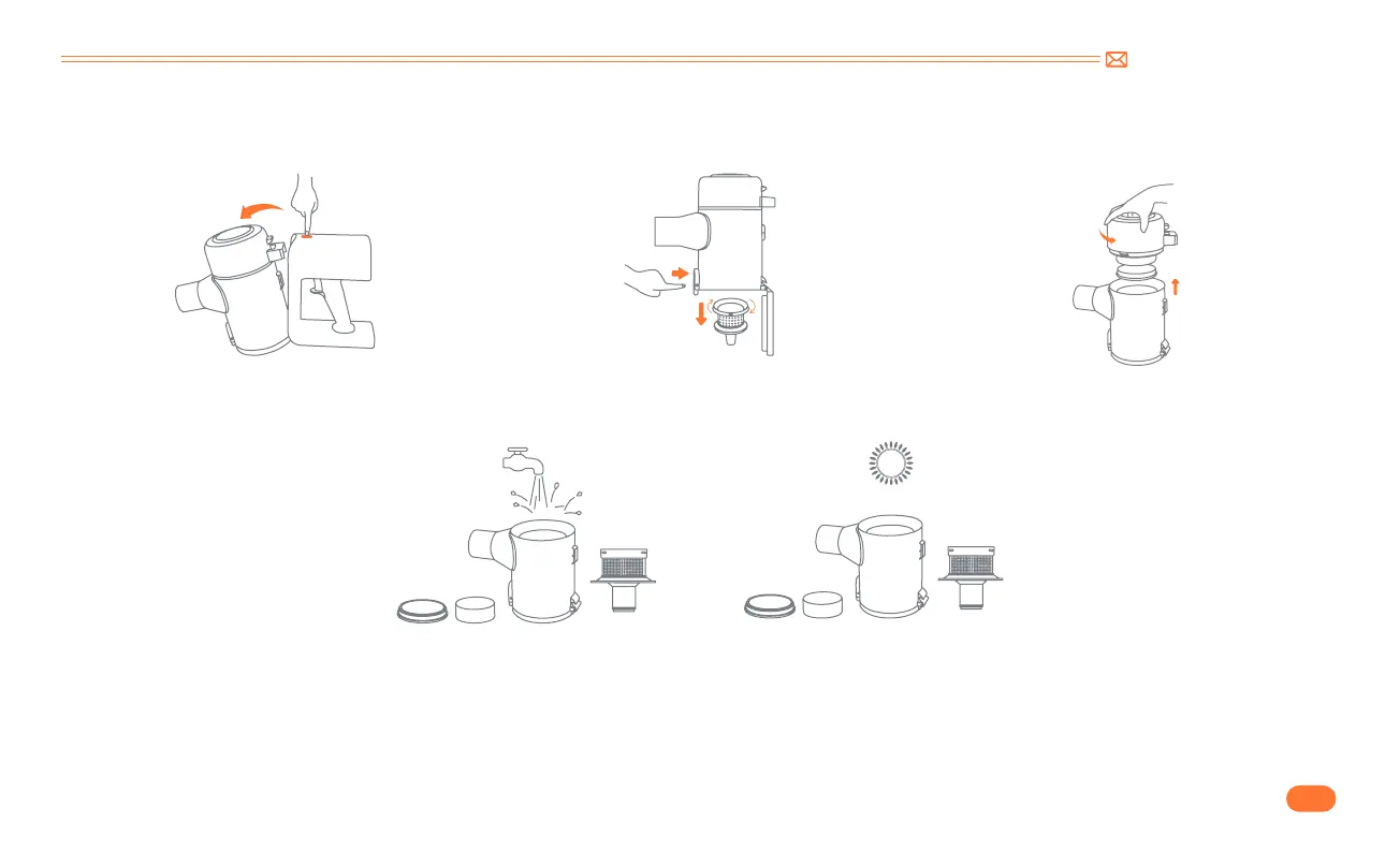 1. Gira el filtro de acero inoxidable en sentido contrario a las agujas del reloj y colócalo en el recipiente para polvo.