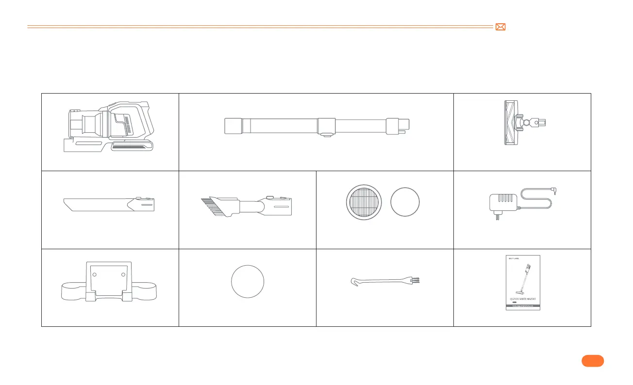 Utensile per fessure lunghe*1 Spazzola per tappezzeria 2 in 1*1 Extra Hepa & Sponge Filter Caricabatterie*1
