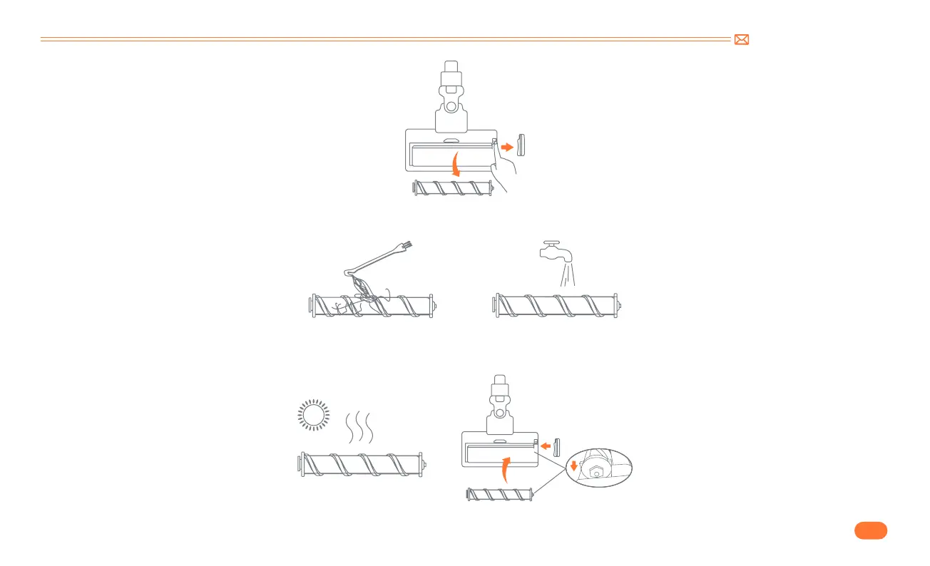 Entfernen Sie den um die Walze gewickelten Schmutz mit einer Mini-Reinigungsbürste und spülen Sie dann mit Wasser nach.