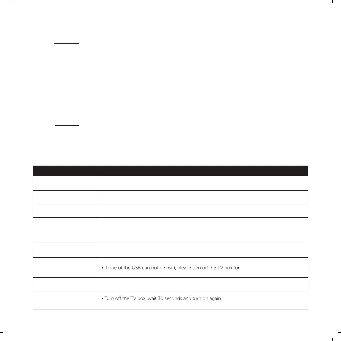 No Power • Check if the power adapter is properly connected to the power and the TV box