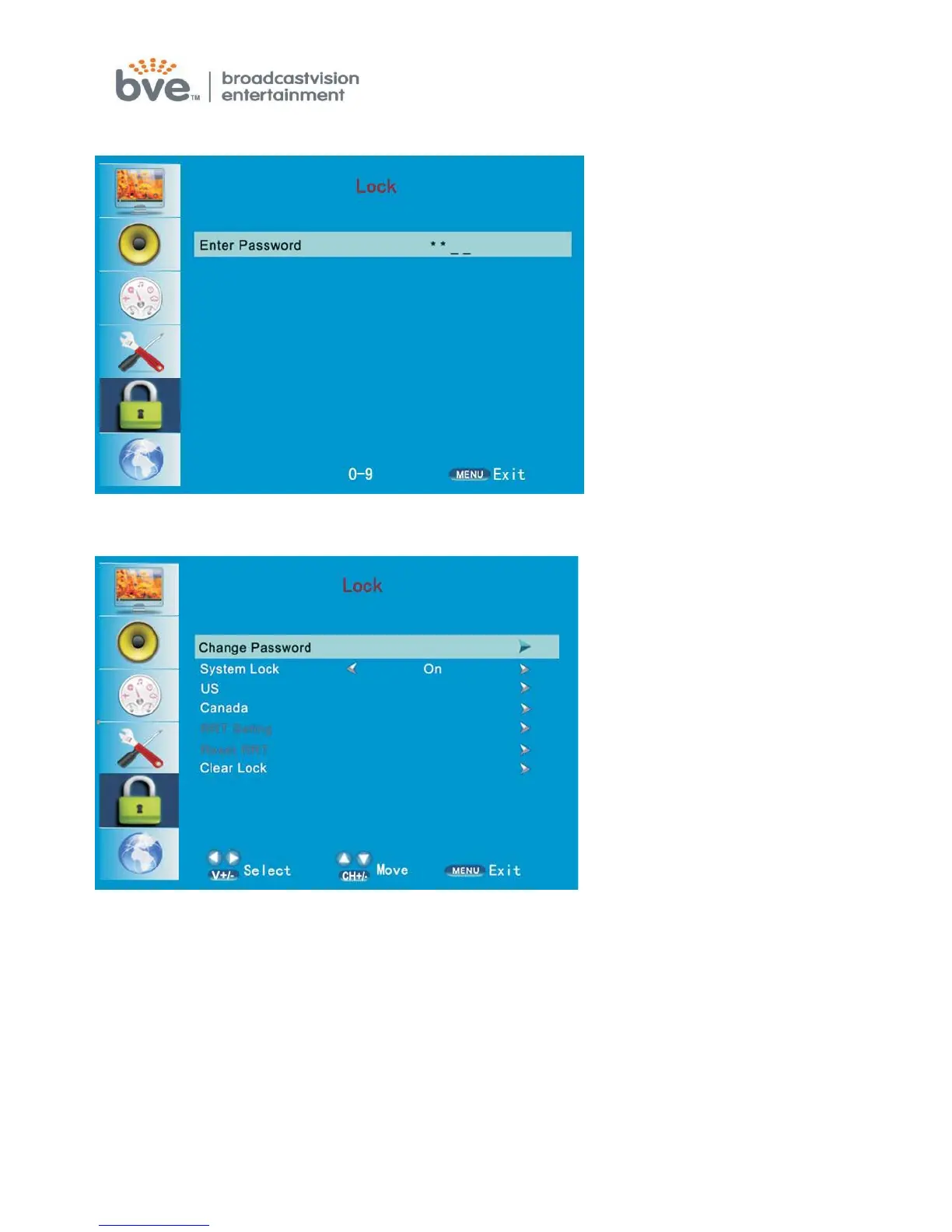 BVE AXS19HD2G - Lock Menu; Parental Controls and Security