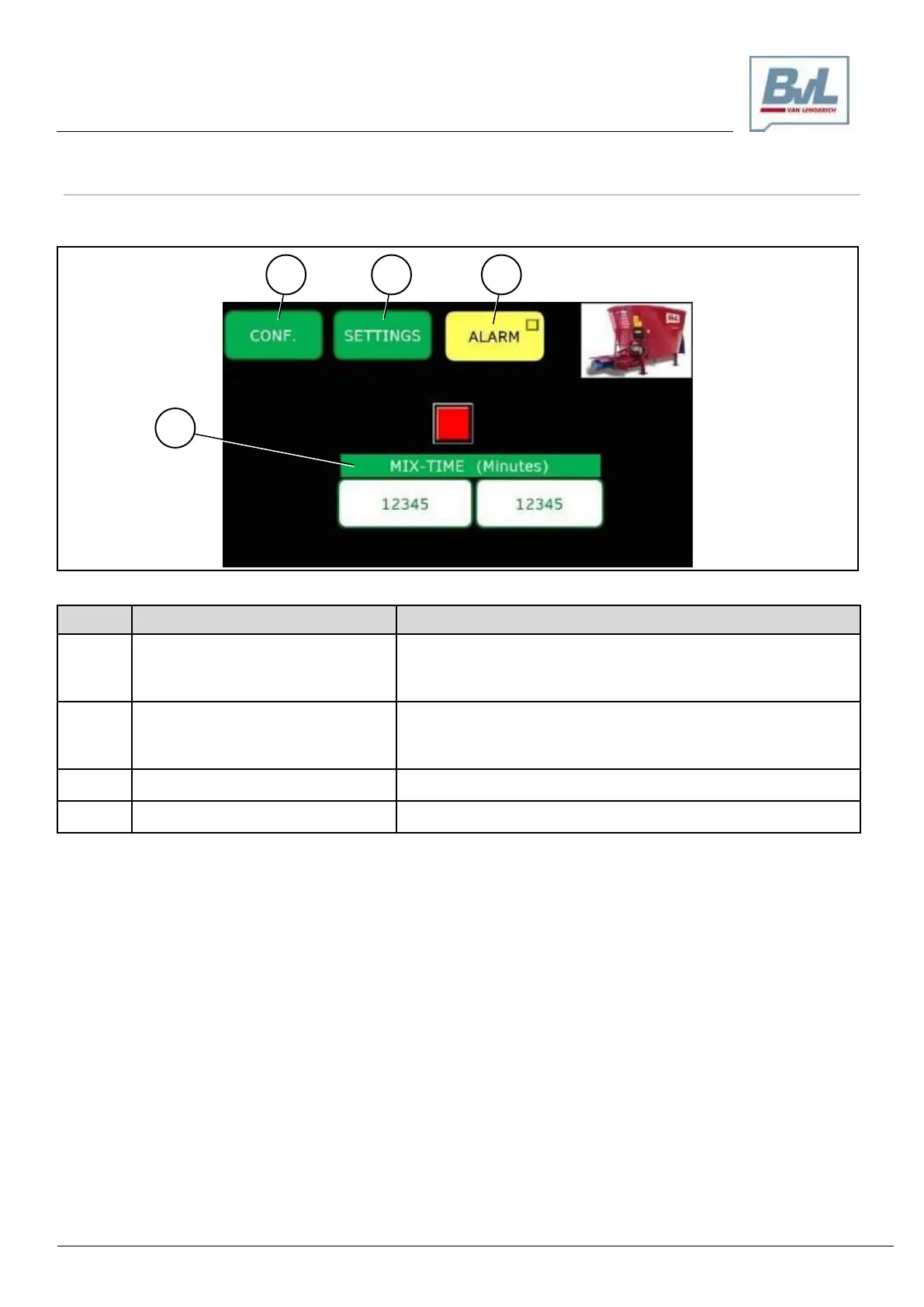 Enter and view the mixing time.
