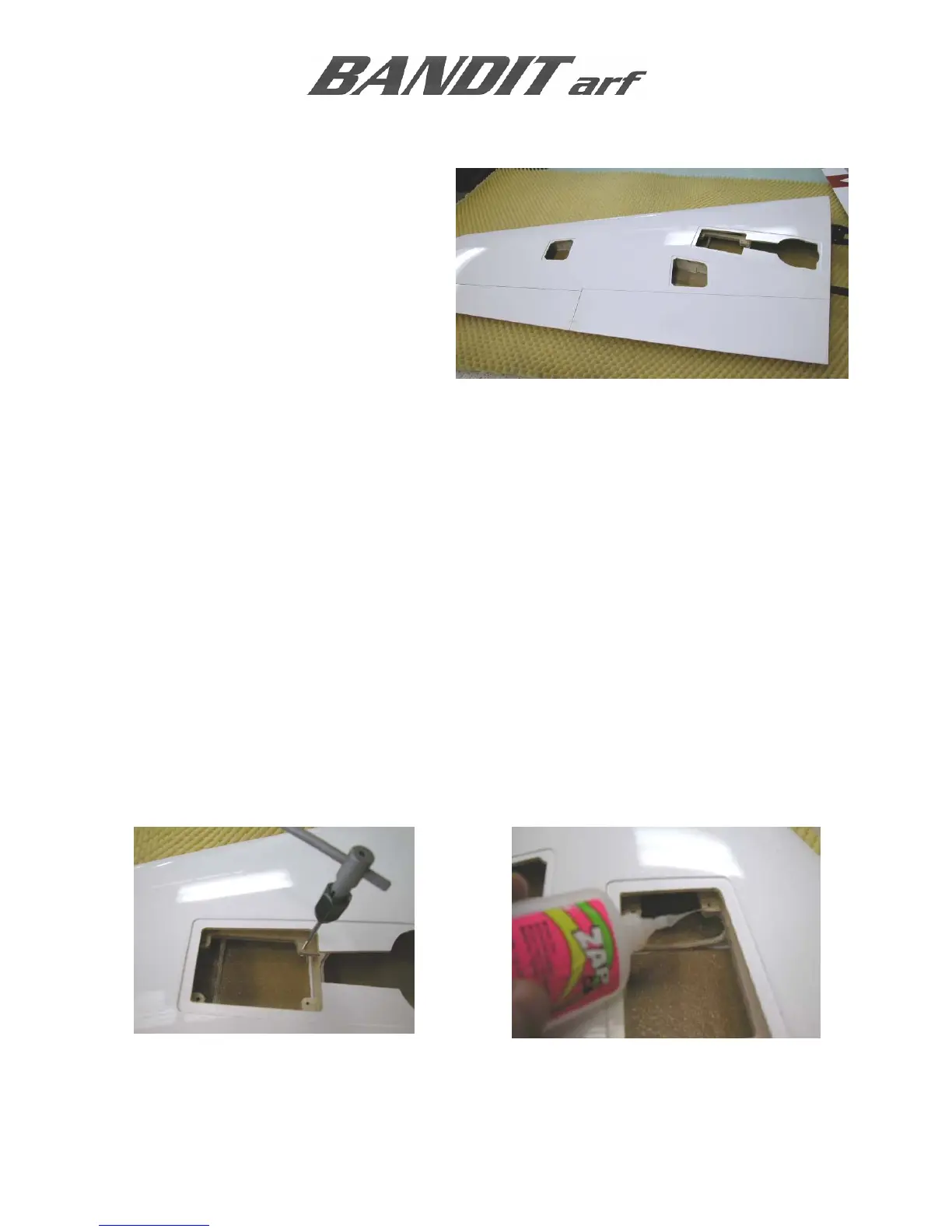 Once satisfied with the fit of the wings, apply AeroPoxy or V-Poxy to the molded “c” channels to lock