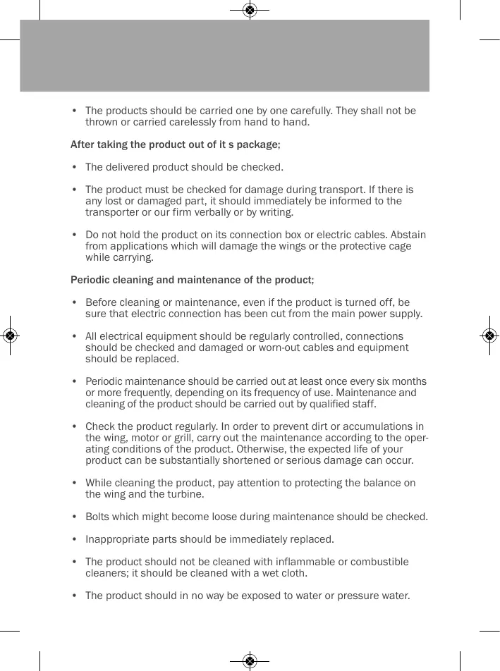 the wing, motor or grill, carry out the maintenance according to the oper-
