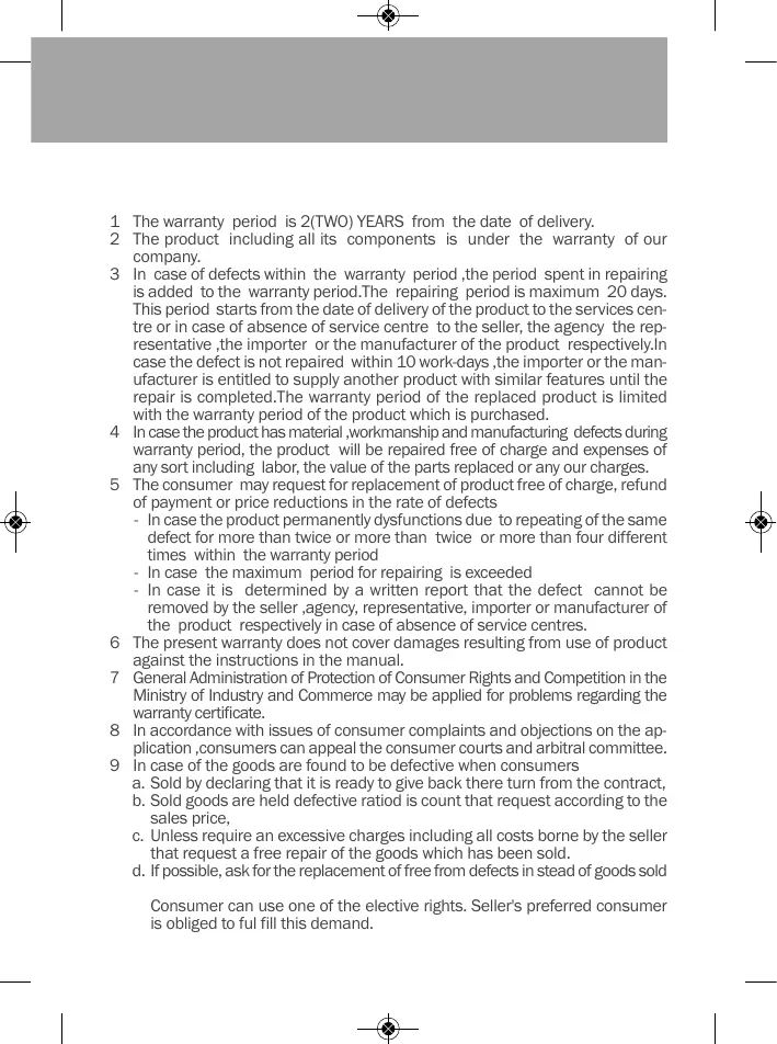 tre or in case of absence of service centre to the seller, the agency the rep-