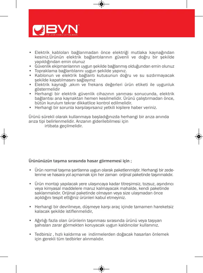 • Ürün normal taşıma şartlarına uygun olarak paketlenmiştir. Herhangi bir zede-