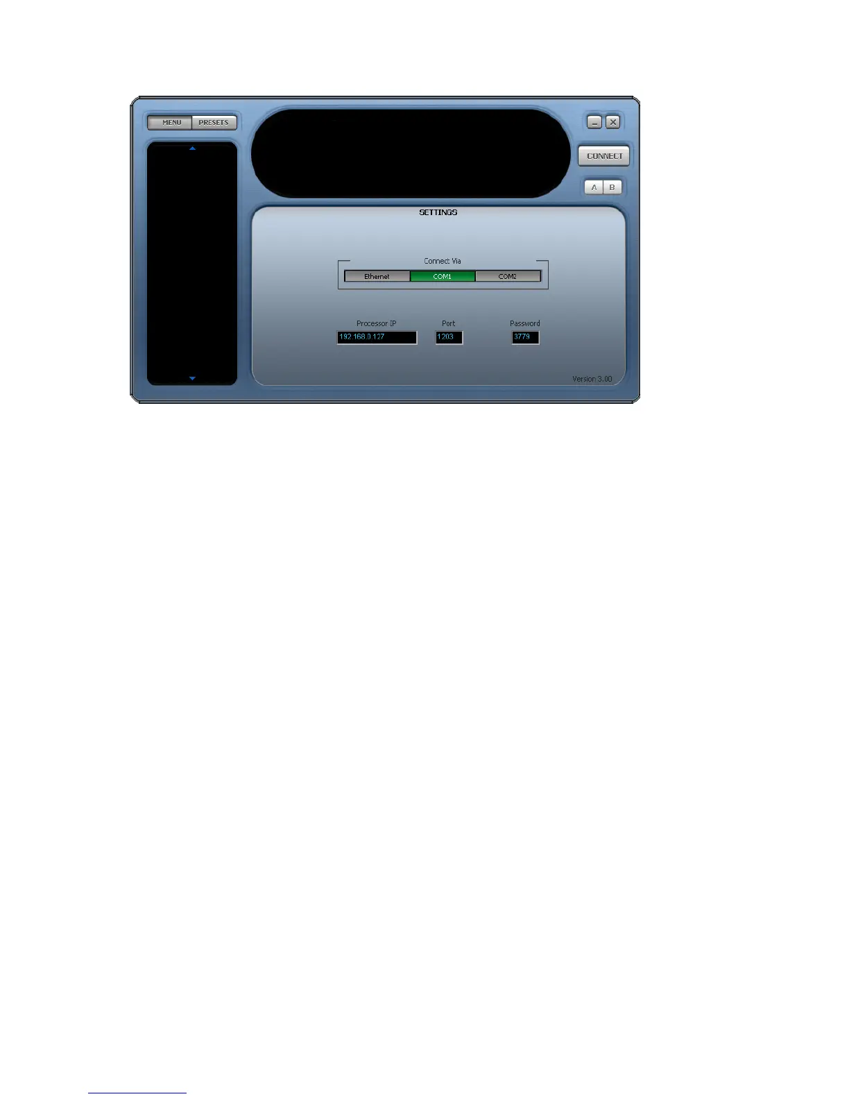 3. Run the DSPXmini-HD remote application and you will be presented with a connection screen (see below) .