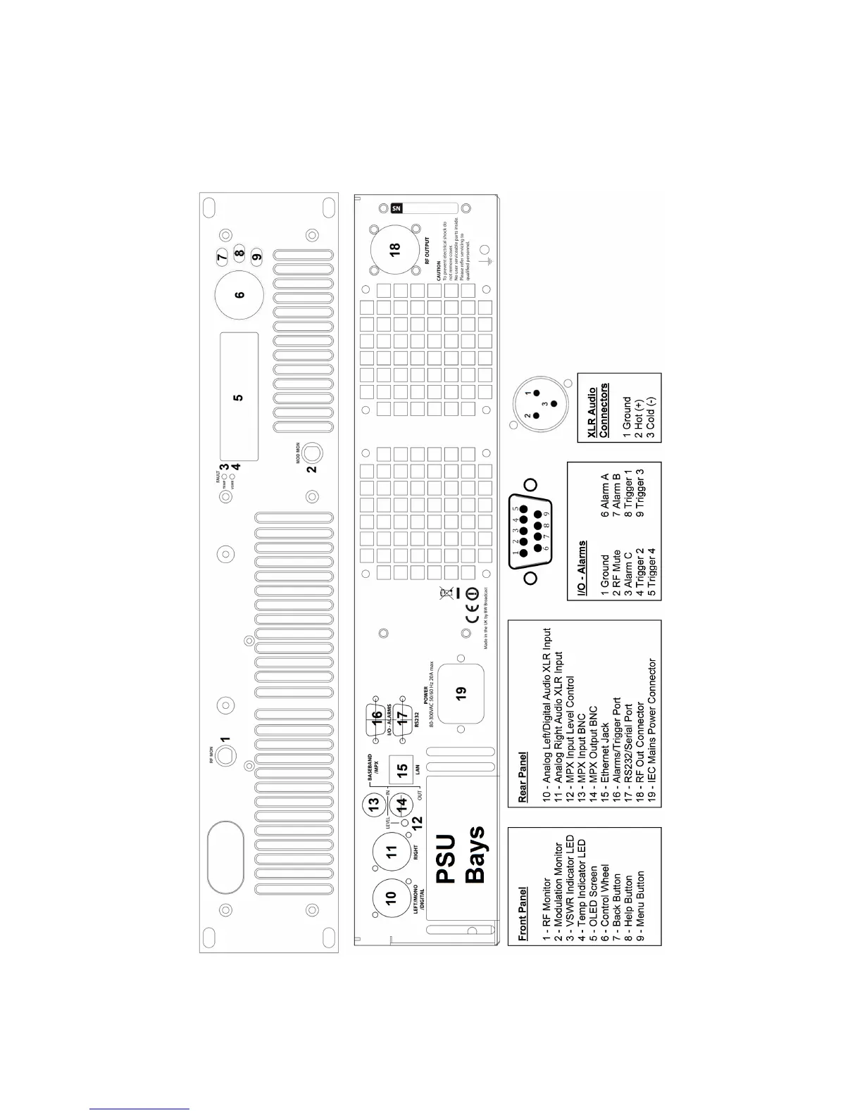 BW Broadcast TX-V2 - 2 U (TX1000, TX1500) Panel Details
