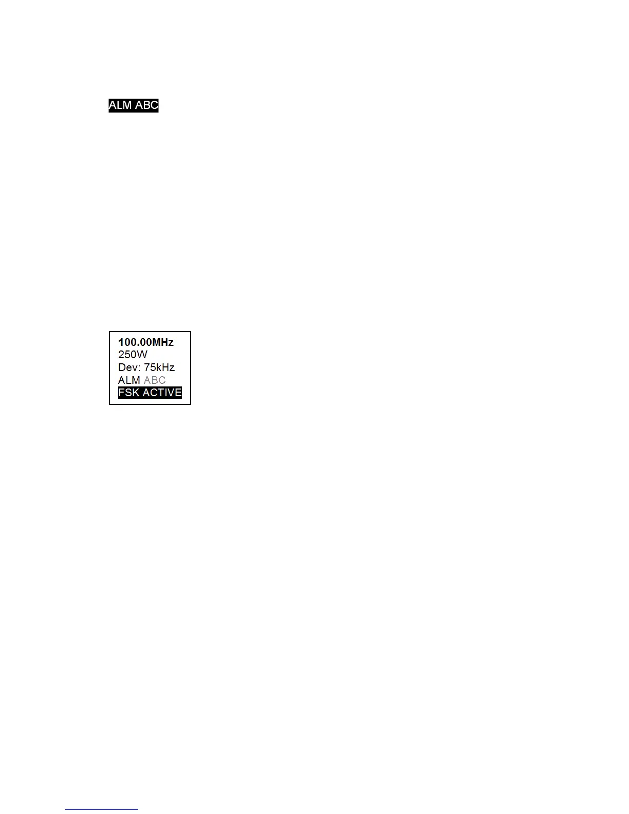 If FSK is enabled, this section will read FSK ACTIVE while the transmitter is keying as shown