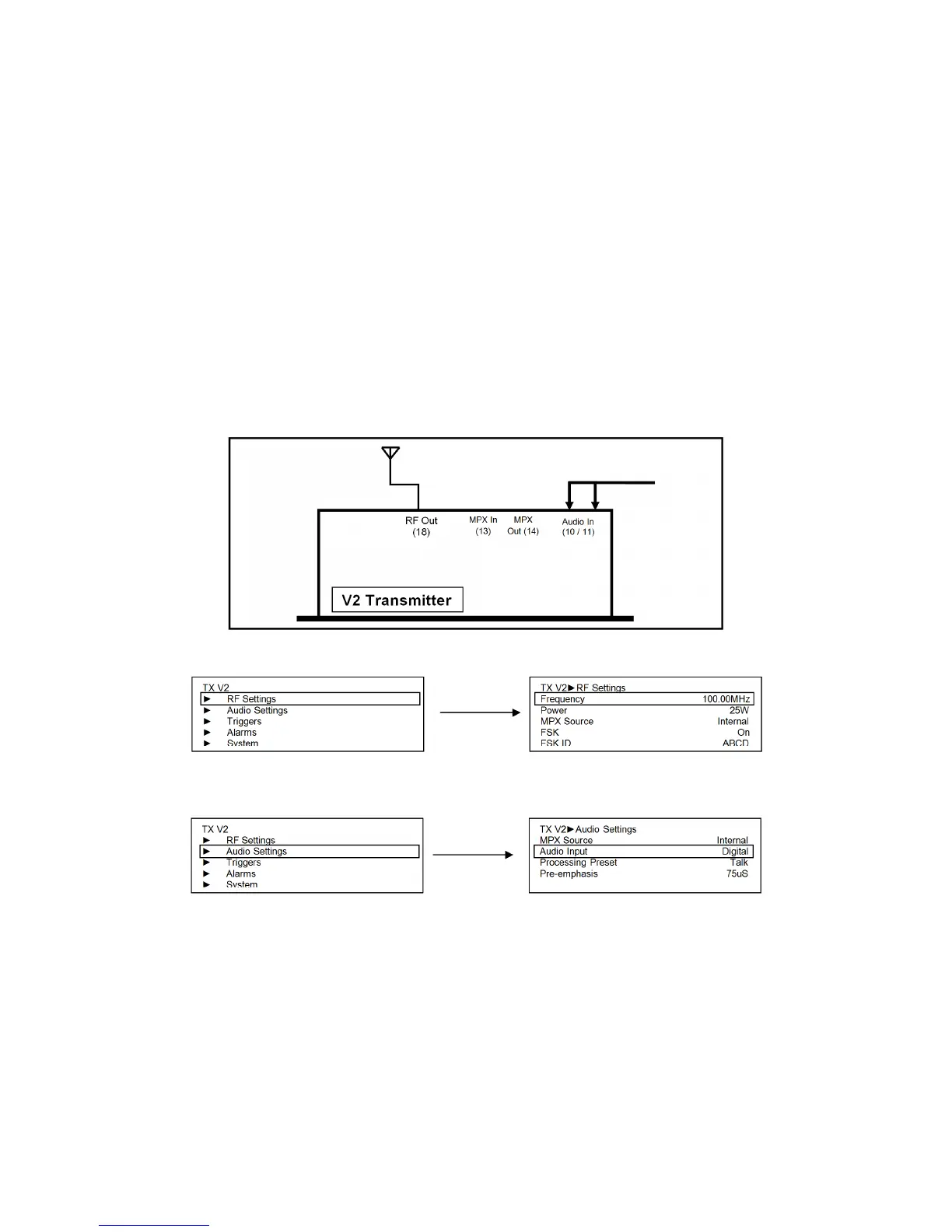 Input Selects analog or digital input to the transmitter’s built in stereo encoder/audio proces-