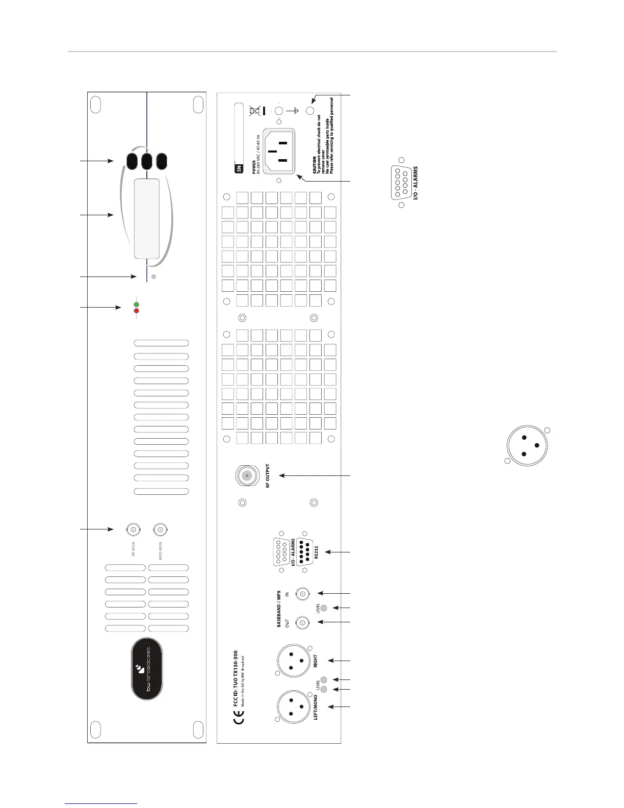 14. Modulation monitor output (buffered multiplex,