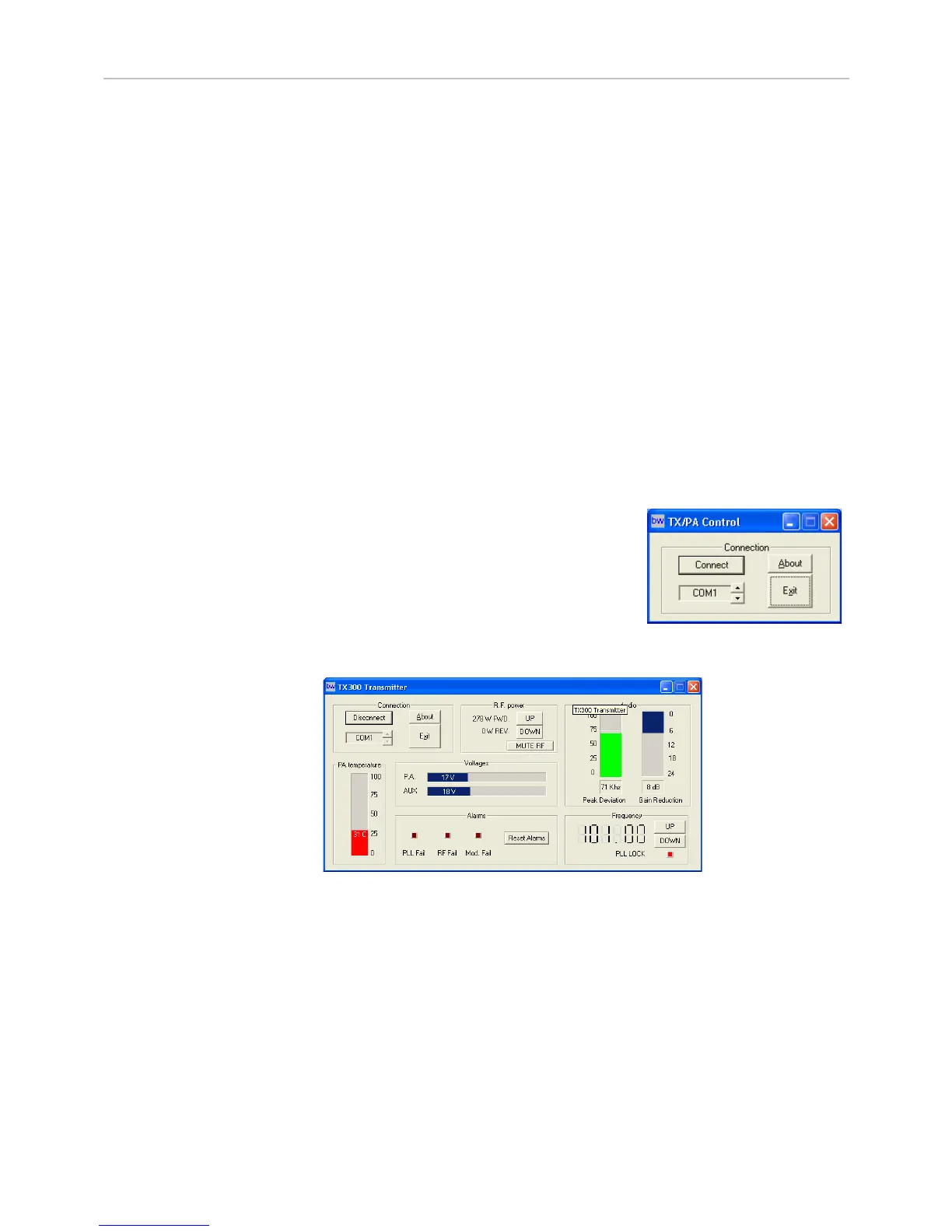 above. Once connected you should be able to monitor all the parameters of the transmitter as well as being able