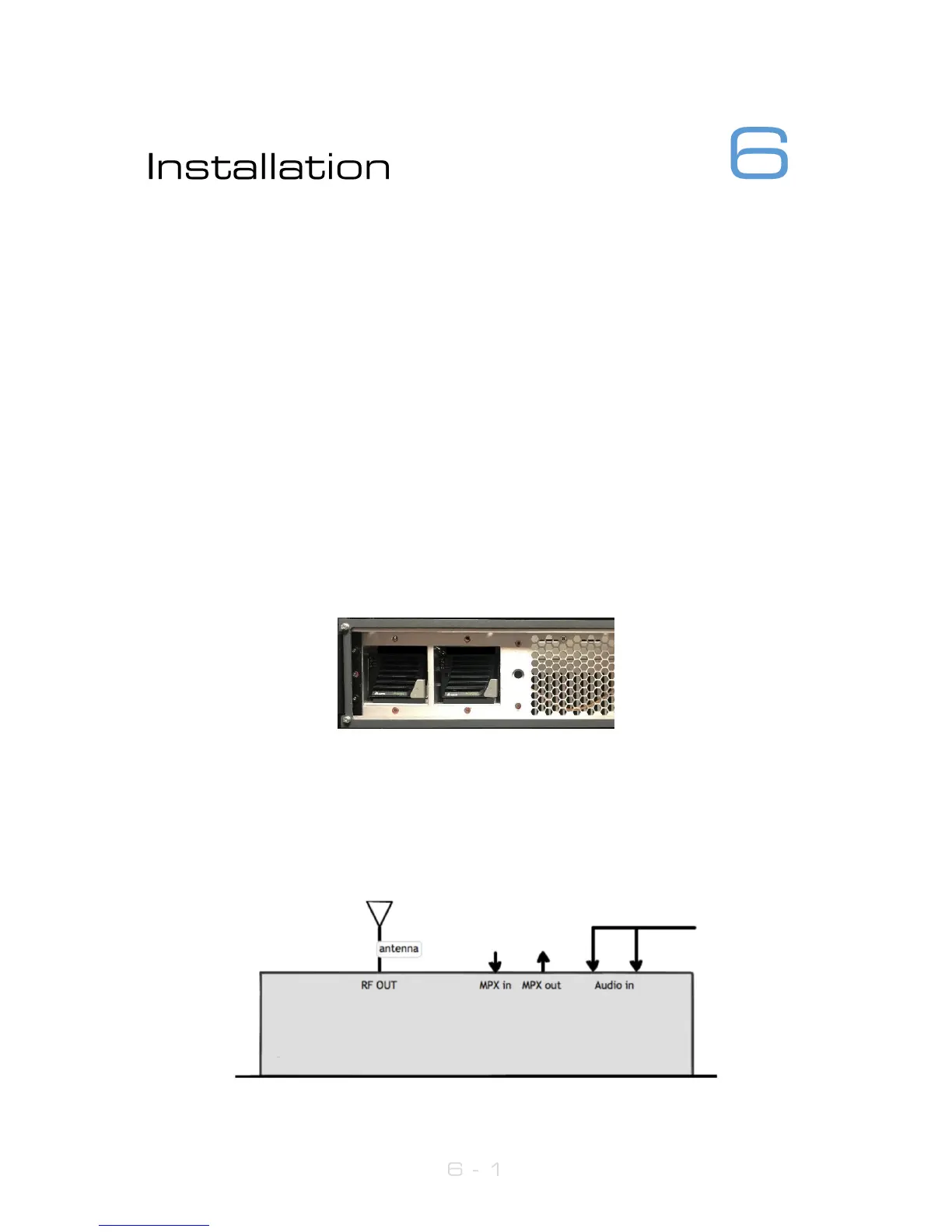 The transmitter should be installed in a properly grounded rack or enclosure, the front