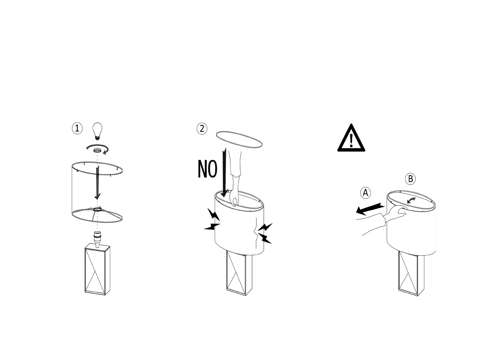 1) Insert the Lampshade on the lamp holder, secure it by screwing the ring nut and finally screw in the bulb.