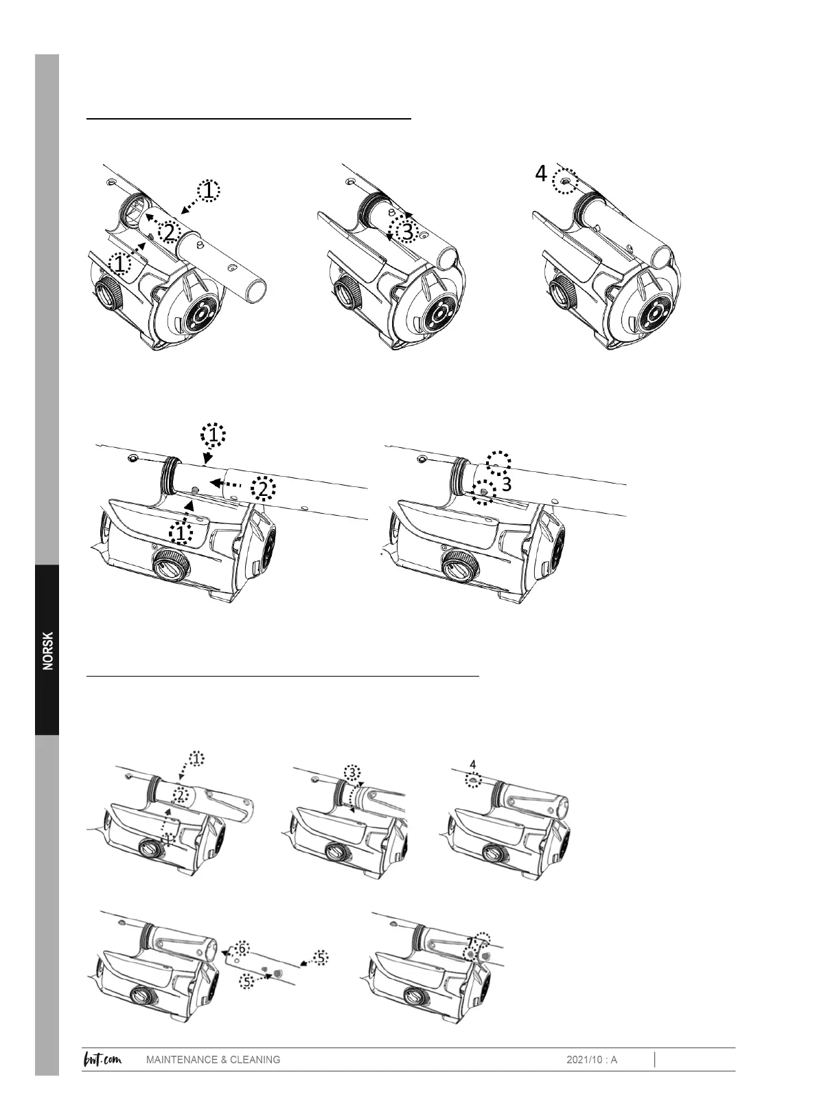 Sett enden (med to sidepinner) av teleskopstangkoblingen inn i bassengstøvsugeren