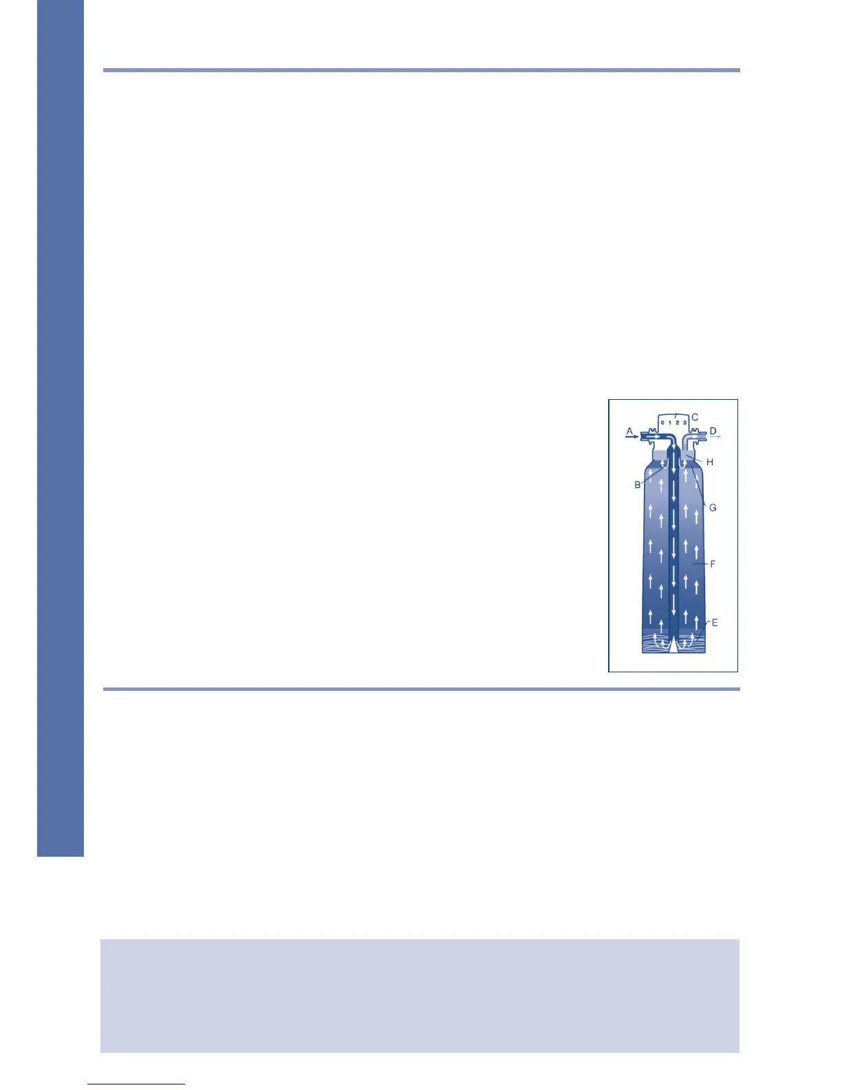 (H). El agua de bypass y el agua descarbonizada se mezclan de nuevo en la salida (D).