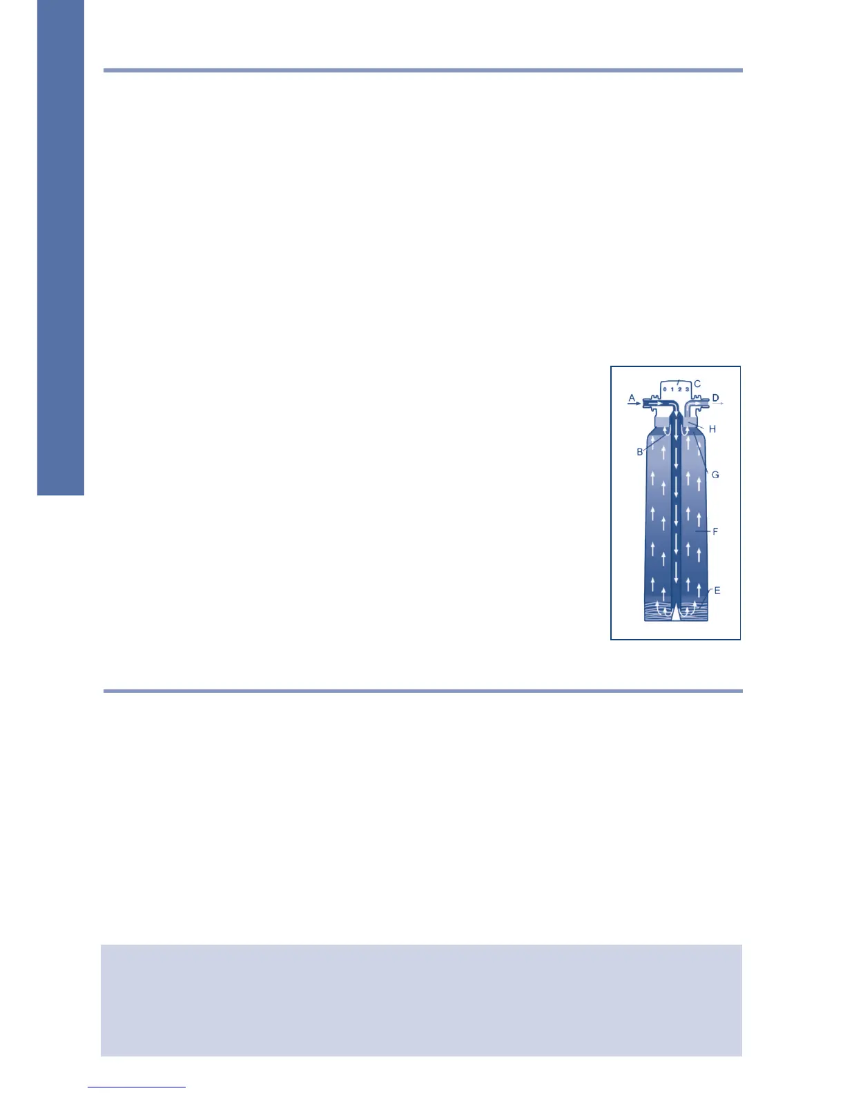 filtrata solo tramite il carbone attivo (G) e il filtro per particelle (H). Nello scarico (D) l’acqua decarbo-