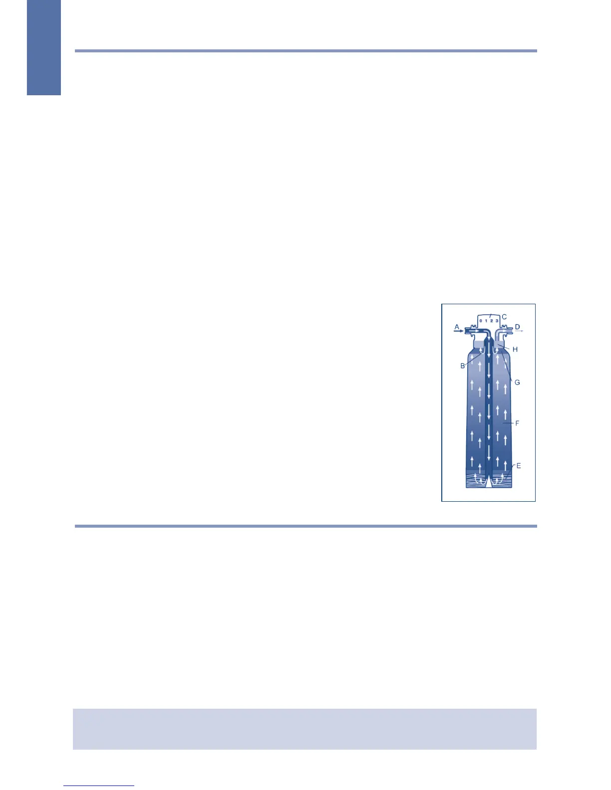 Das Rohwasser (A) fließt der Filterkerze zu (Abb. 3). Im Bereich (E) werden Partikel über einen Vor-