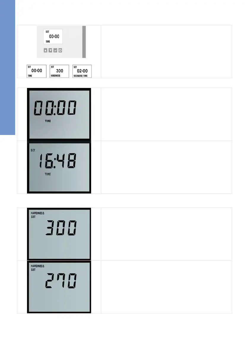 De instellingsmodus voor de hardheid verschijnt op het