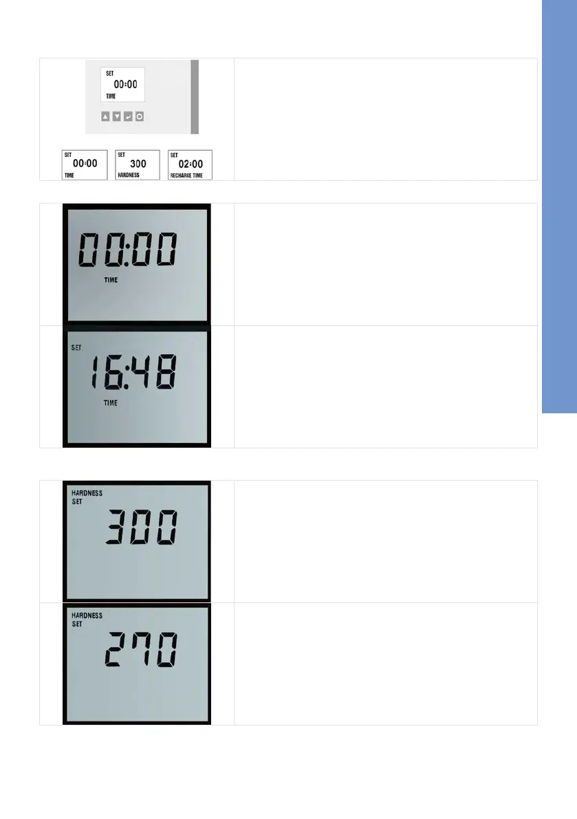 El indicador muestra el modo de ajuste de la dureza. El va-