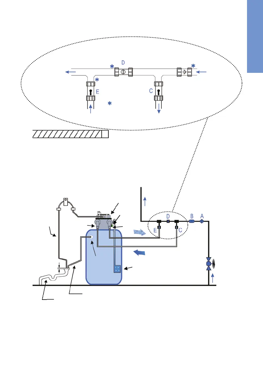 E. Outlet valve (soft water) ¾“
