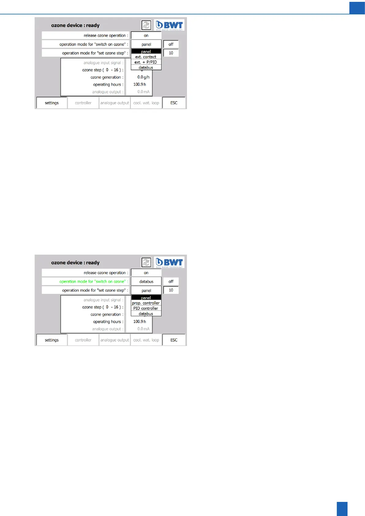 for the “Switch on ozone” switch. For you to select an operating mode,