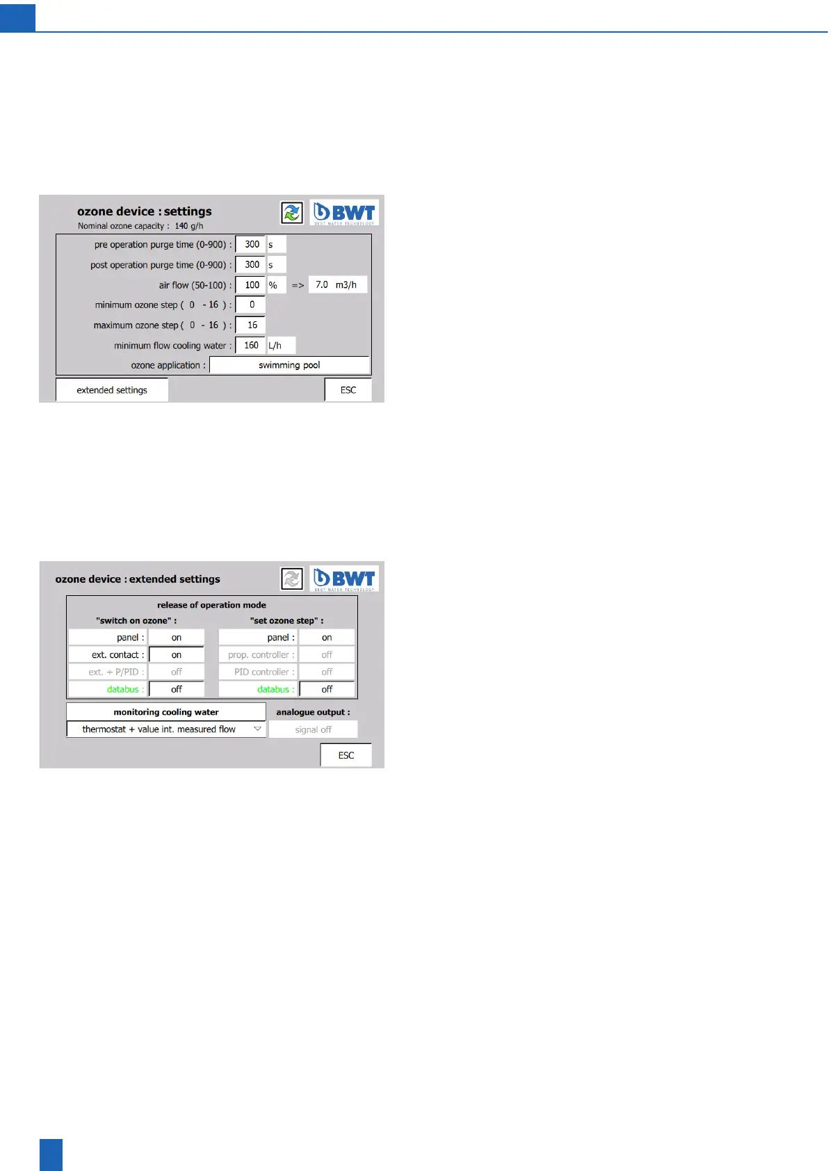 Ozone device: Extended settings