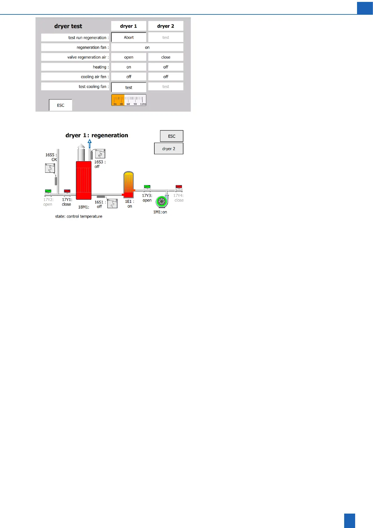 This screen displays a dryer during regeneration and all of the electrical