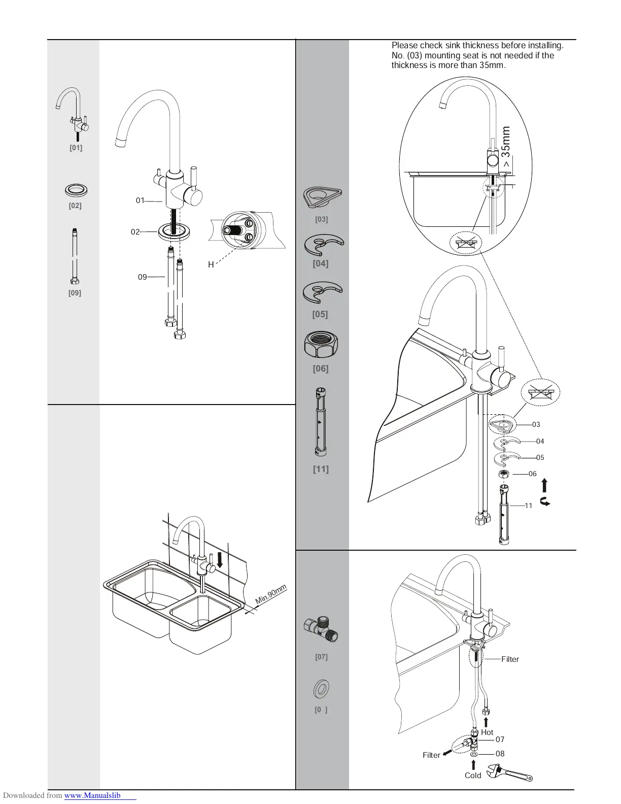 Please check sink thickness before installing.