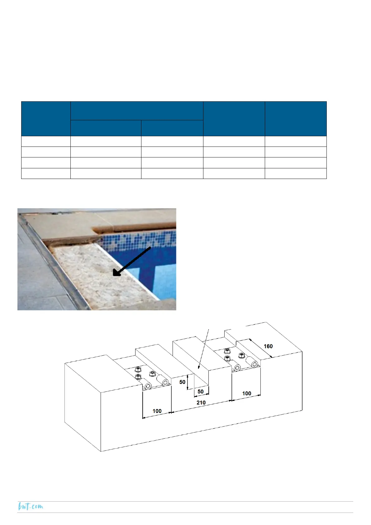 pool at the points where the flanges will be installations.