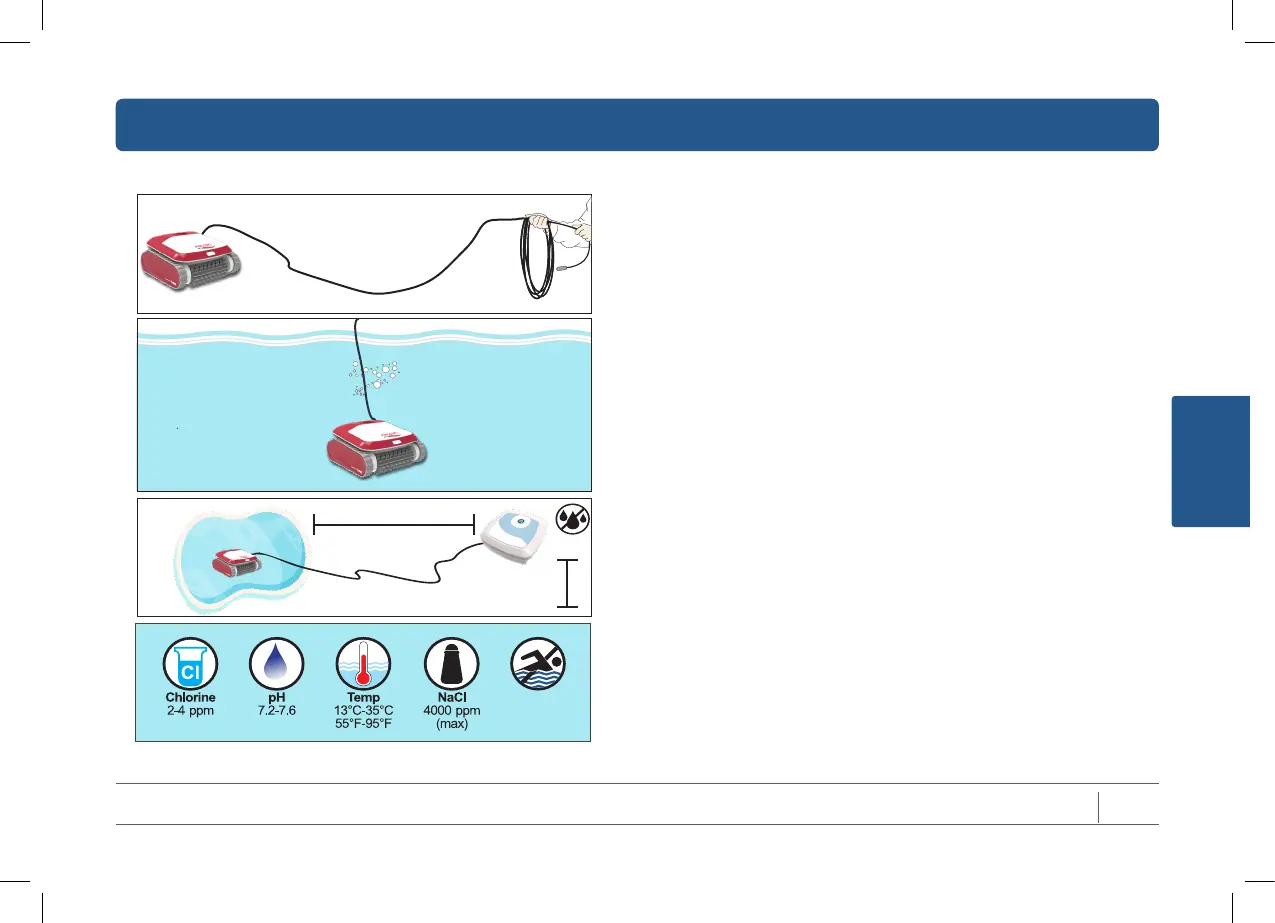 in the pool, near the power supply. Place the cleaner unit in the pool.