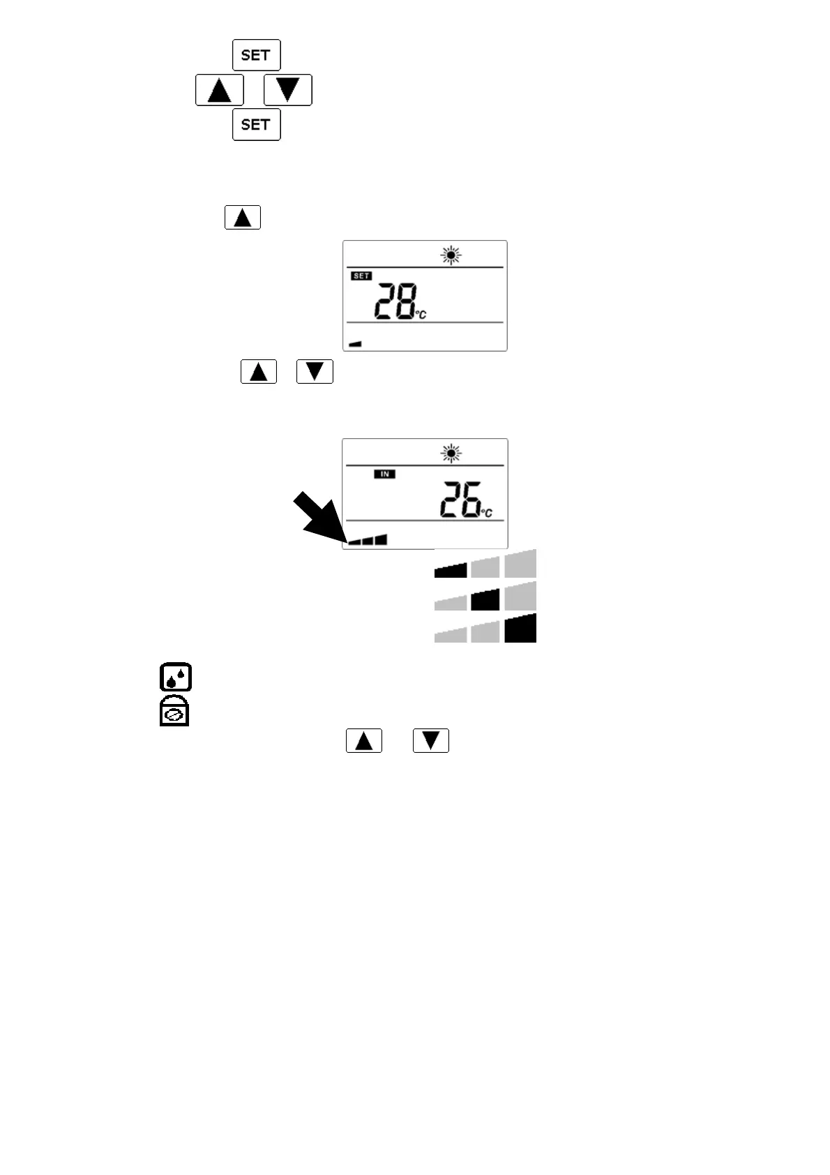 When pressing this button the display will indicate “SET” and the desired water temperature.