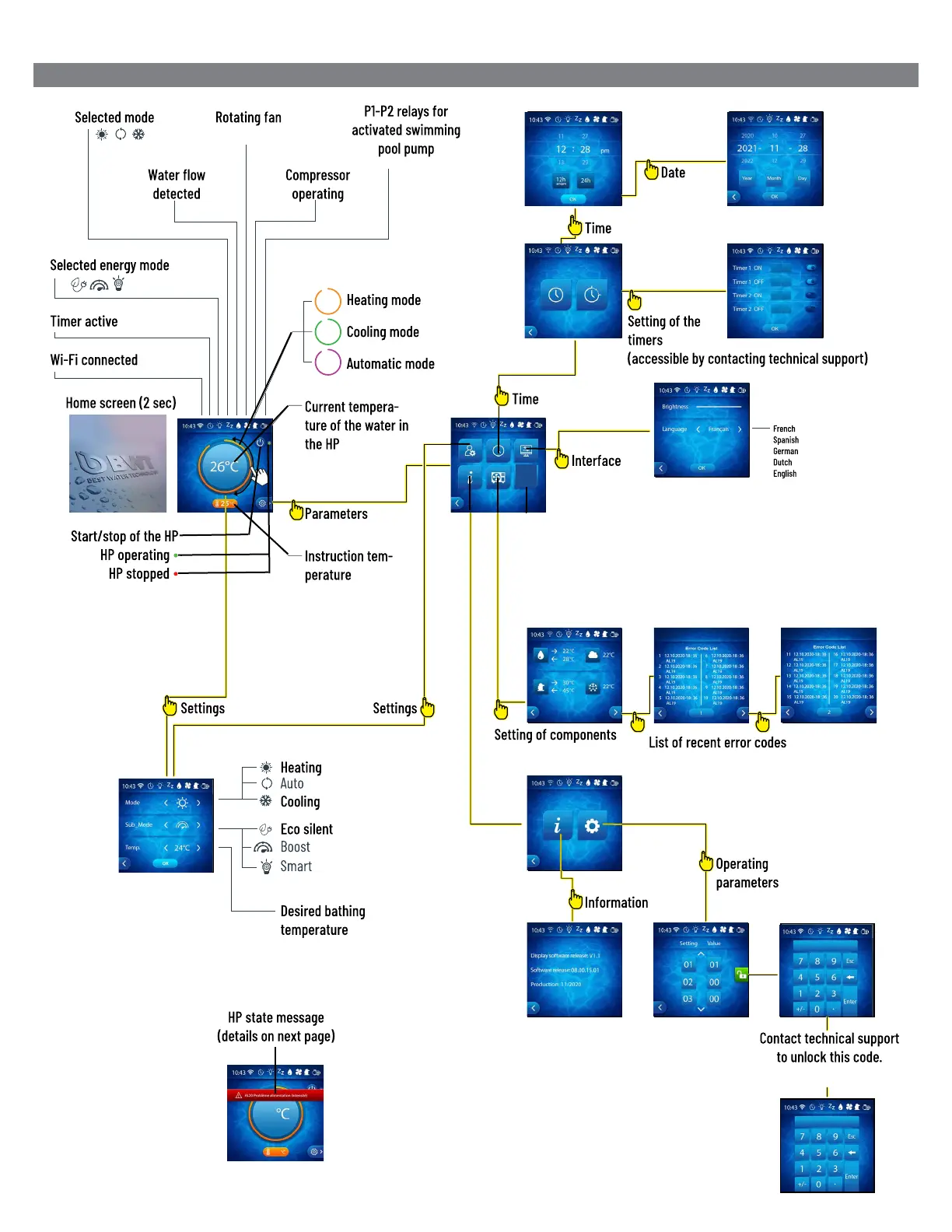 BWT FI CONNECT EF 55 - Electronic Controller Functions; Navigating the Controller Interface; Mode Selection and Timer Settings; Interface Customization Options