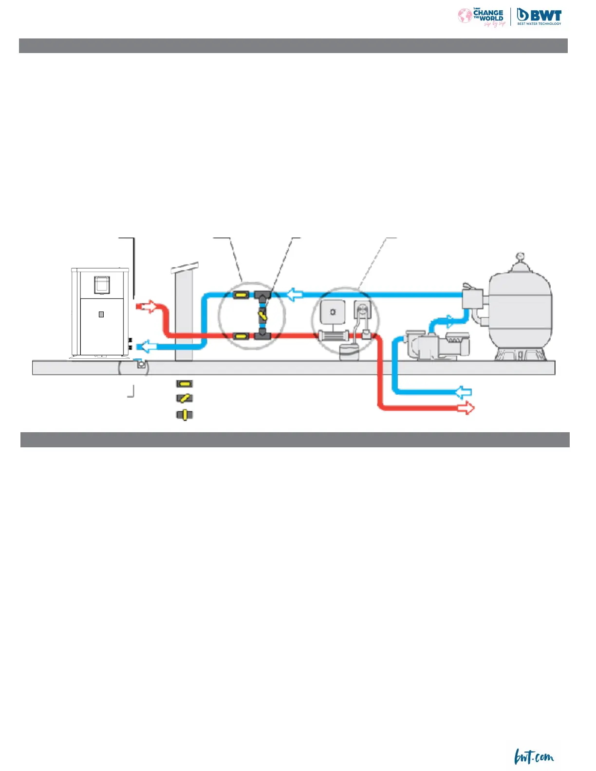 • La BDC es compatible con cualquier tipo de tratamiento del agua. La BDC se debe conectar obligatoriamente con un tubo PVC de Ø 50 mm al circuito