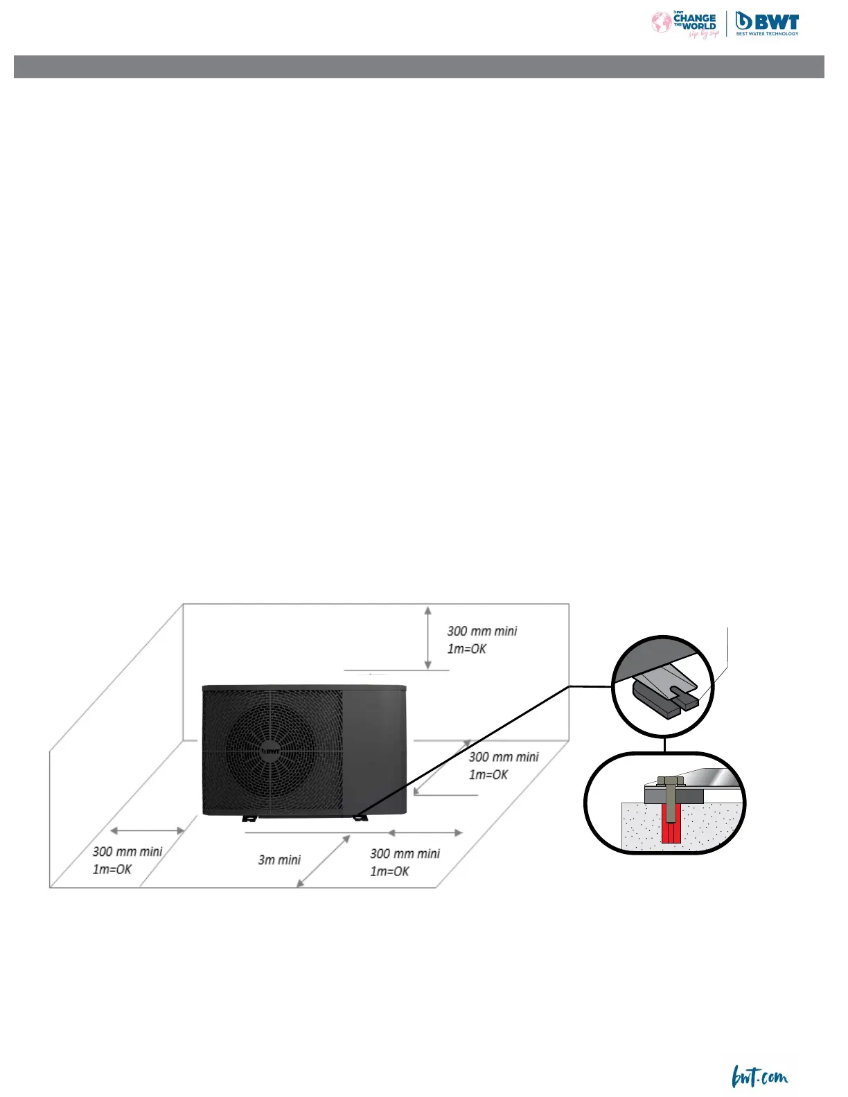 • Prévoir un espace sufsant autour de la PAC pour les opérations d’entretien et de maintenance.