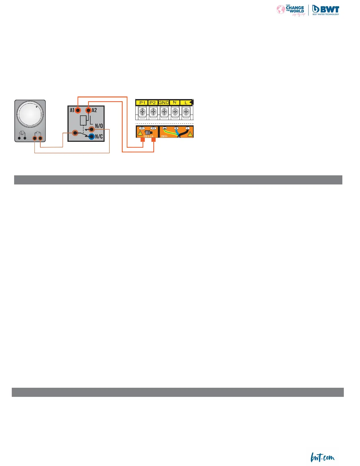 • Sluit de spoel van dit relais (A1 en A2) aan op de klemmen Pl en P2 van de WP.