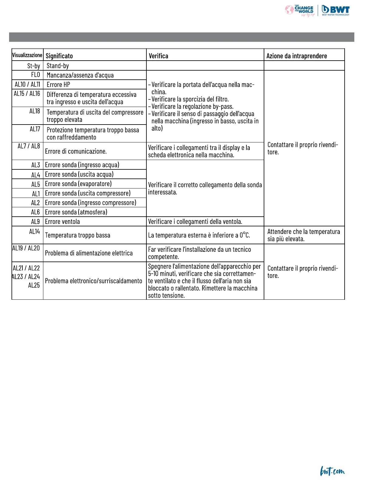 BWT FI CONNECT EF 55 - Tabella Dei Messaggi DI Errore