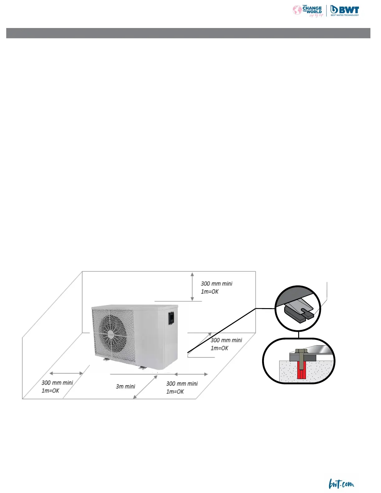 - Installer la PAC à l'extérieur à plus de 2 m du bassin selon les lois en vigueur (NF C 15 100).