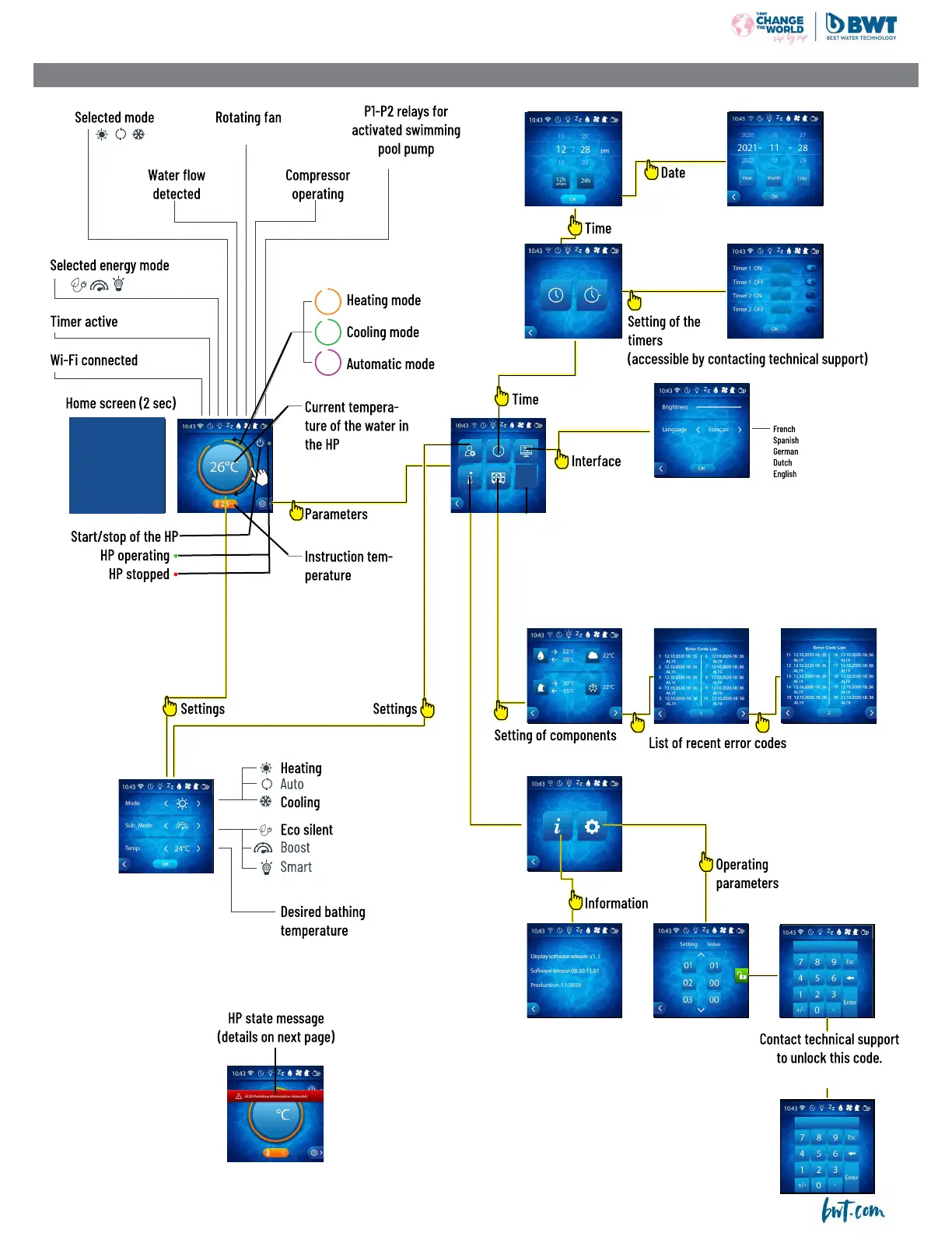 BWT FI CONNECT - Electronic Controller Regulation; Date and Time Configuration; Timer and Mode Settings; Interface and Component Settings