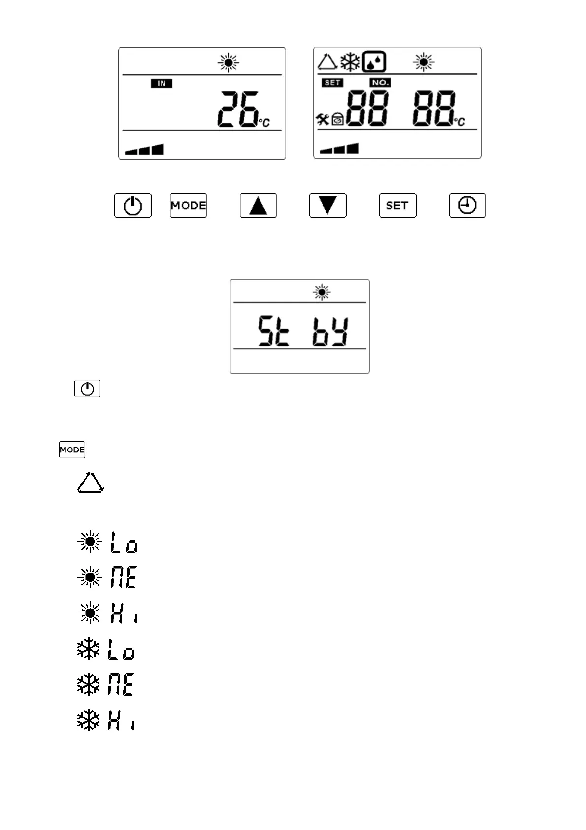 Durch Drücken dieser Taste wird das entsprechende Zeichen des gewählten Arbeitsmodus erscheinen: