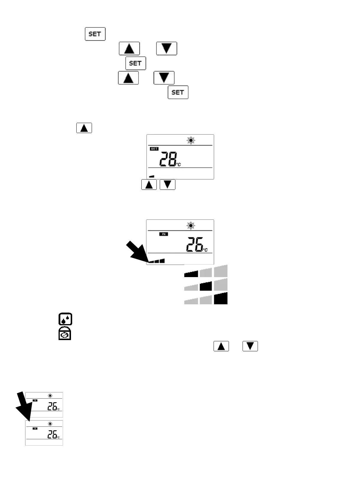 Durch Drücken der Taste wird “SET” und die Wunschtemperatur am Display angezeigt.