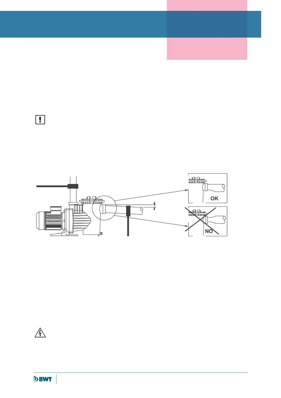 Die Ansaugleitung muß mit einer leichten Steigung zur Pumpe verlegt werden, um das Entstehen von Luftpolstern