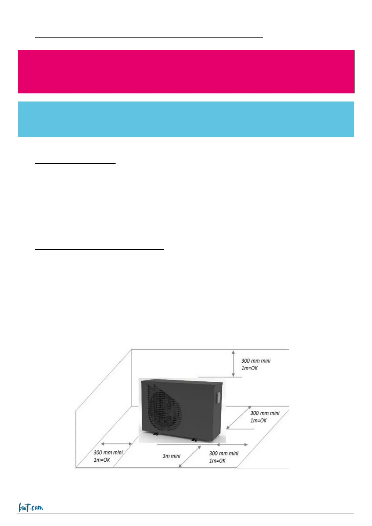 en respectant les distances (ci-dessous) avec les obstacles alentours (parois, haies…) pour ne