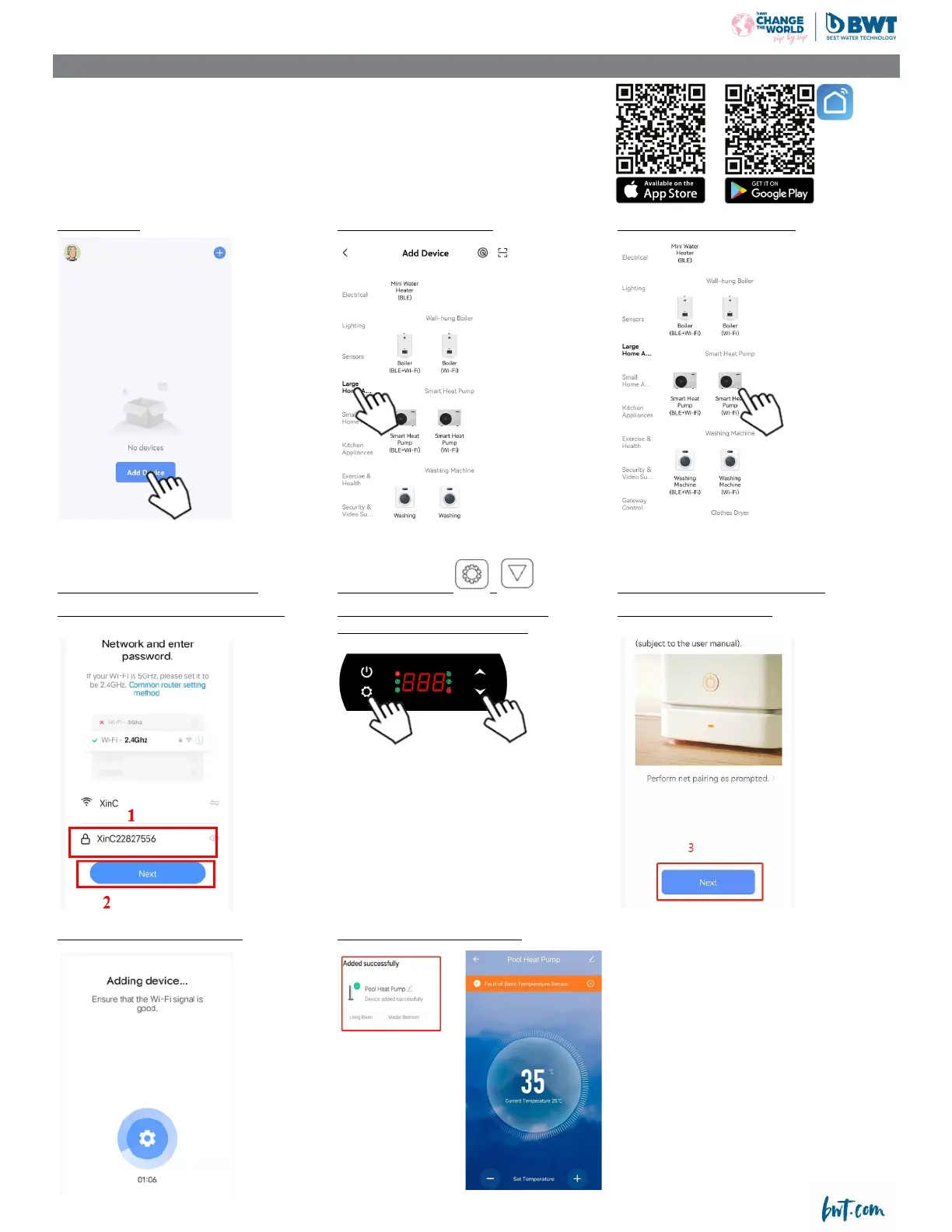 Pulsar “añadir” Elegir “dispositivos grandes” Elegir “Smart Heat Pump (Wi-Fi)”