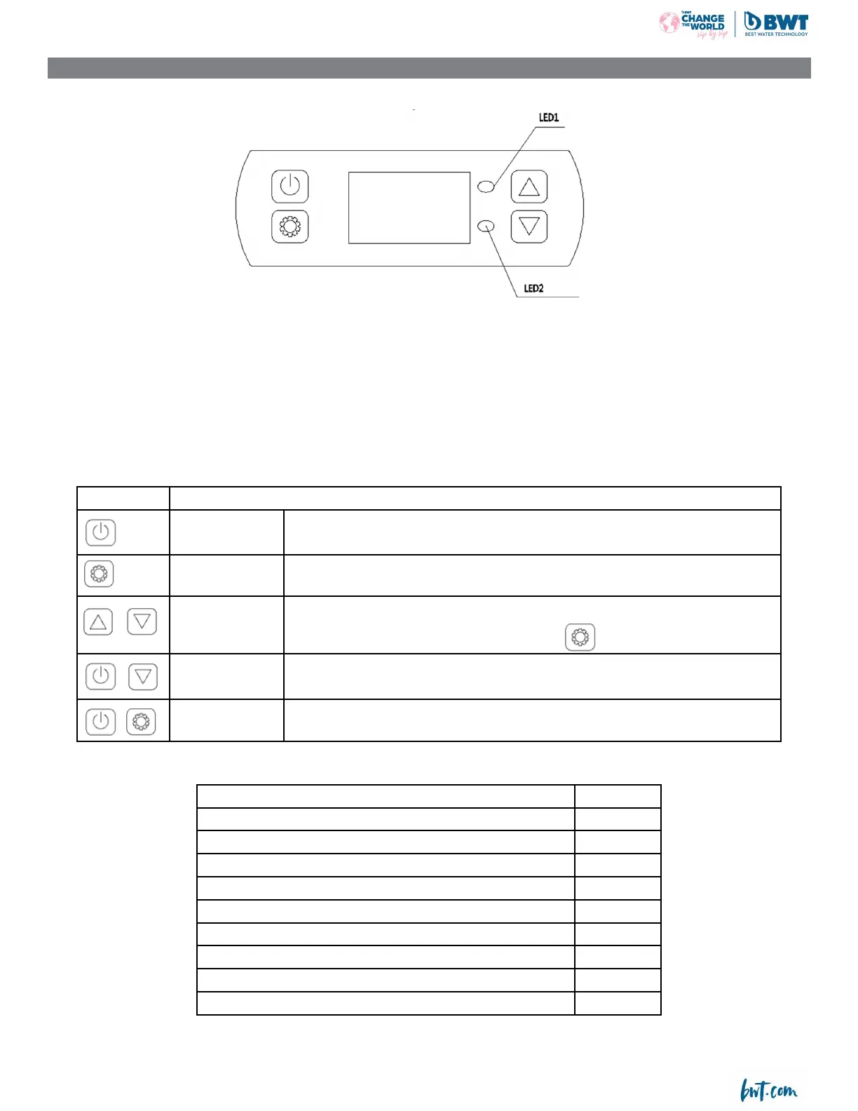 • LED 1: Als de temperatuur is afgekoeld, brandt LED 1 groen en gaat LED 1 knipperen als de temperatuur is ontdooid.