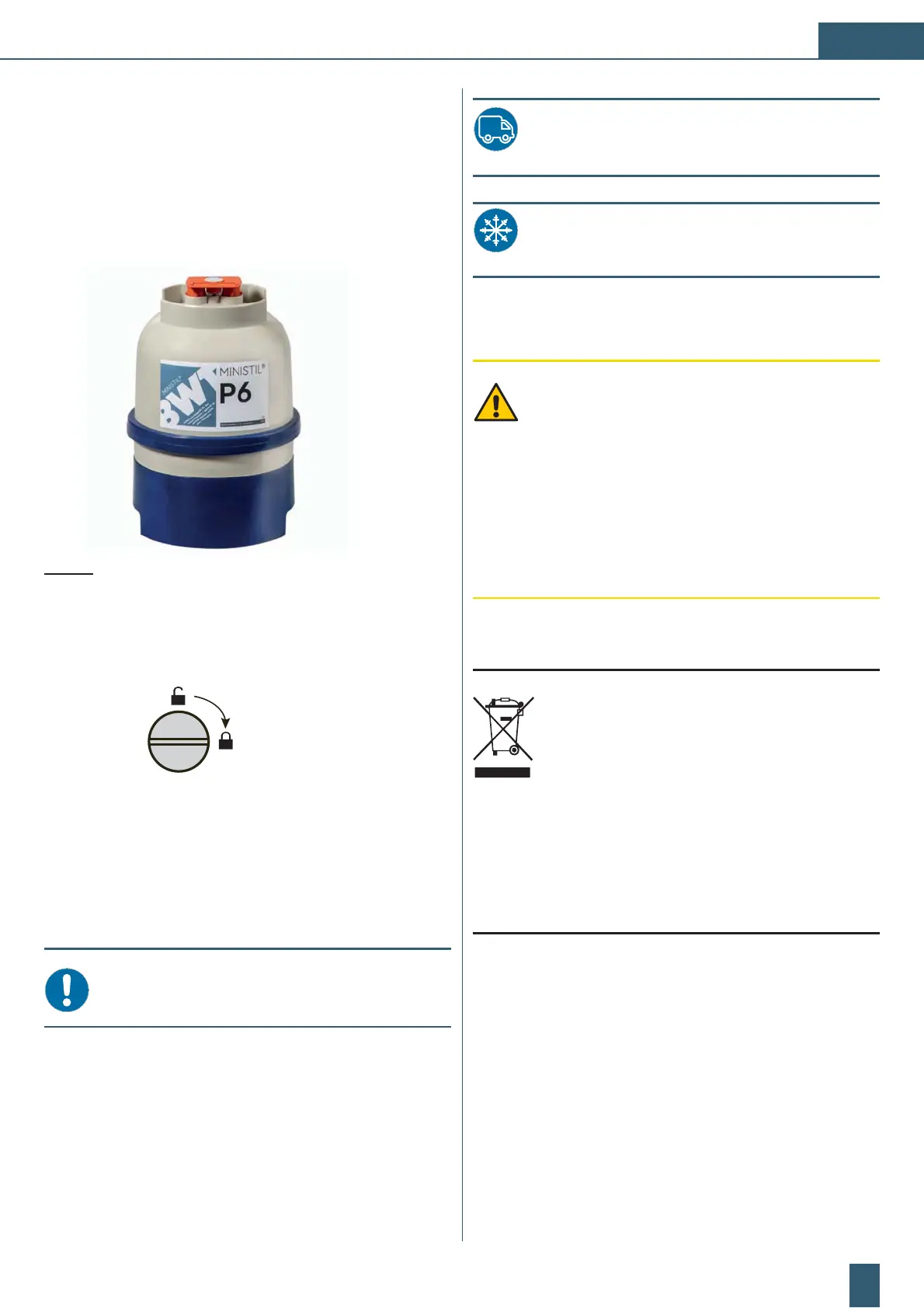 For transport reasons the cartridges must be free of water