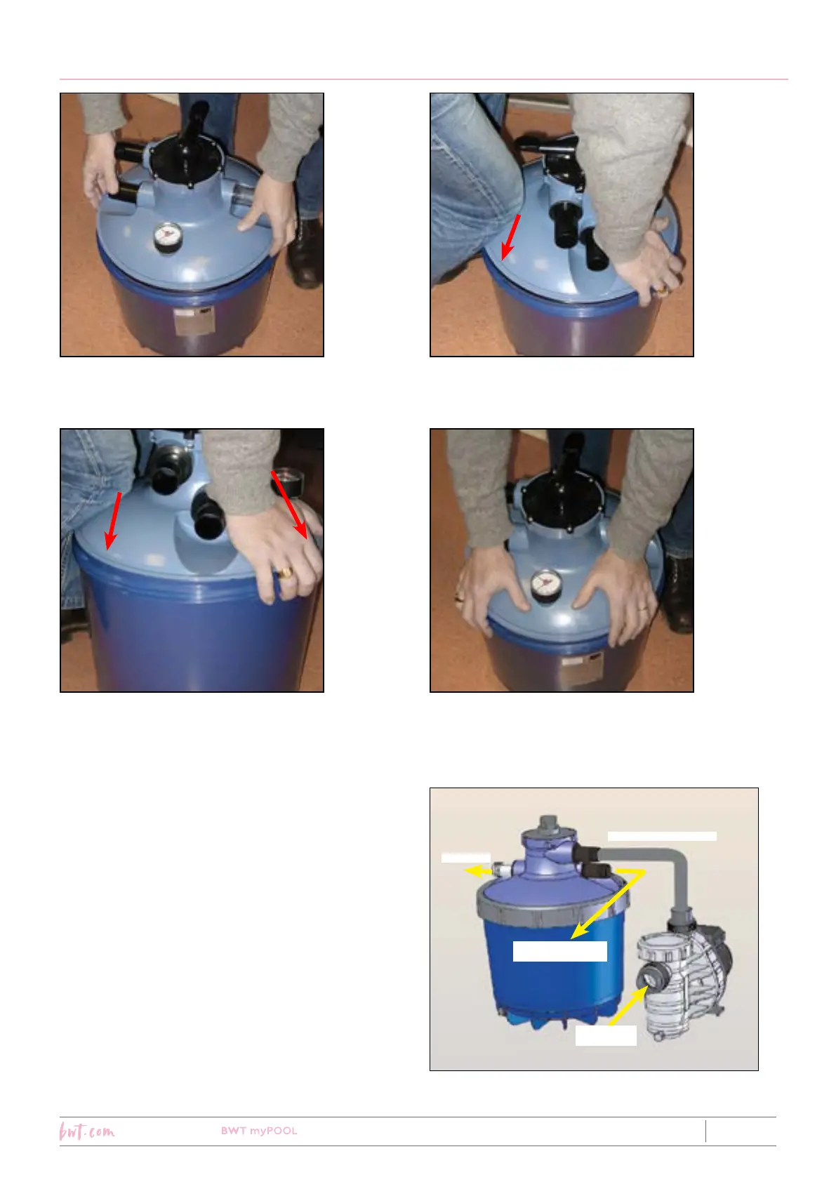 gleichzeitig auf den Filtertank. Der Druck auf den
