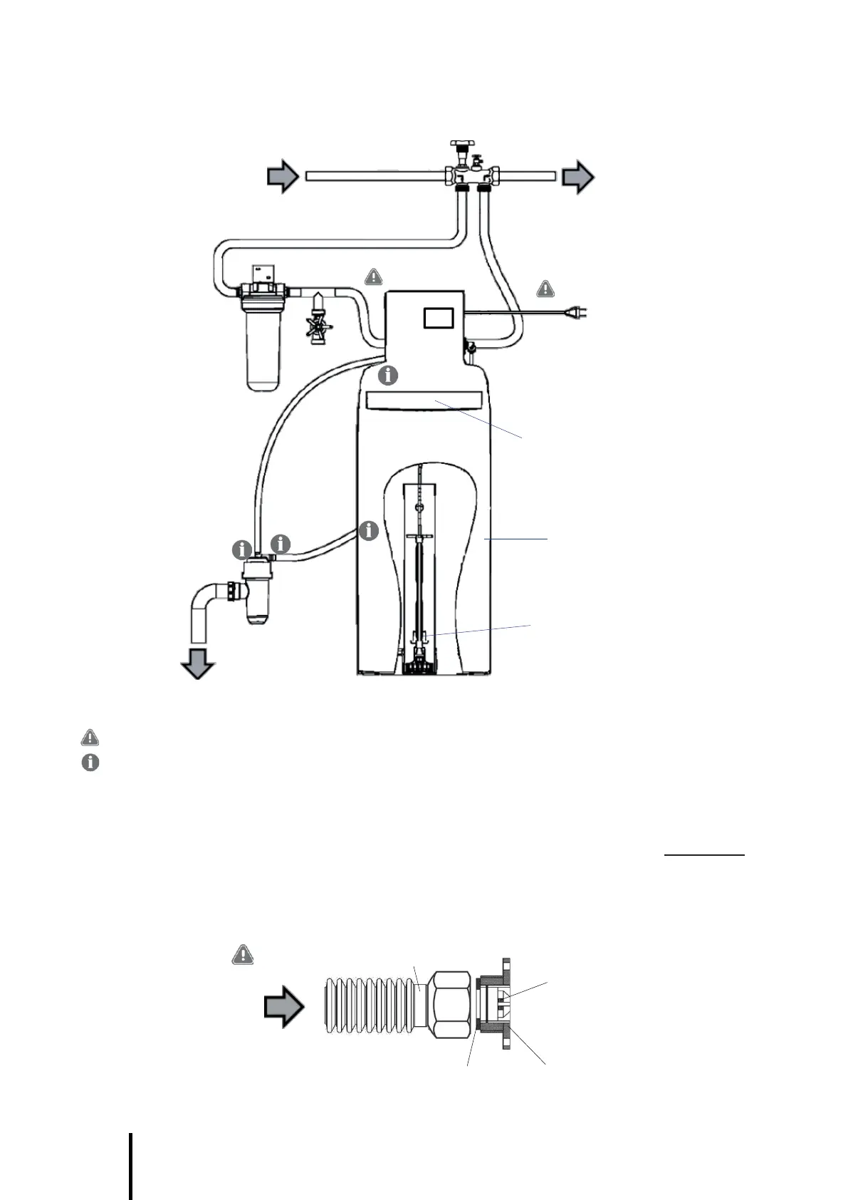 et de montage. Pour éviter ce phénomène, il est impératif de raccorder l’adoucisseur avec des flexibles