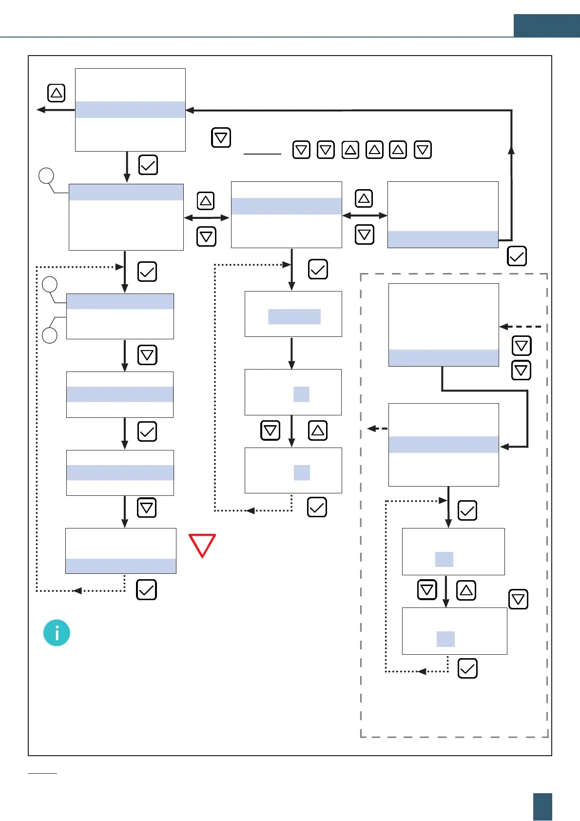 Fig. 14: Programación: „CONFIG.“, „MODO OPERACIÓN“, „PRESIÓN DESC.“ y „TIEMPO DE LAVADO“ – Ejemplo de esquema